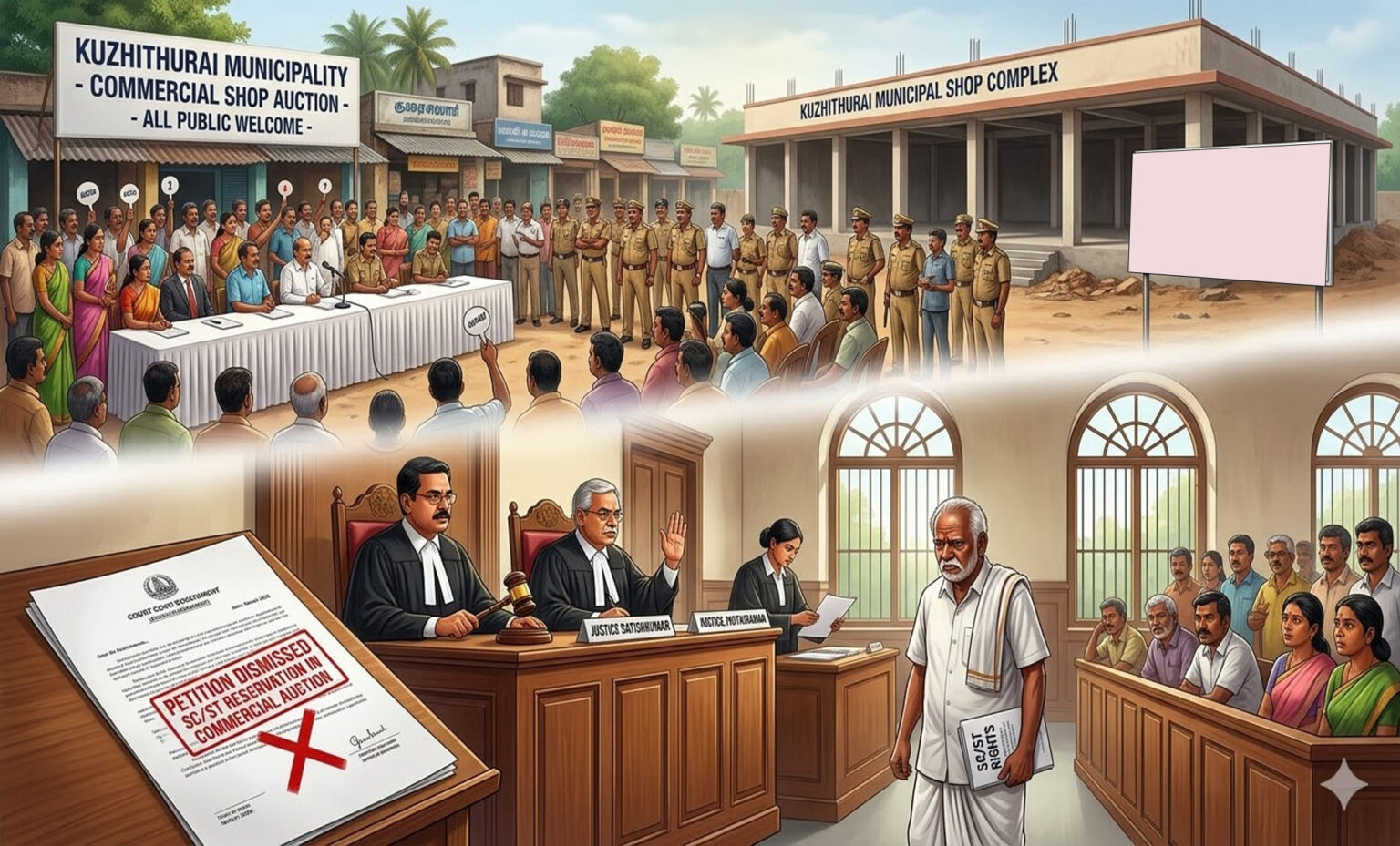 நெல்லை மாவட்டம் ராதாபுரத்தைச் சேர்ந்த குமார் உயர்நீதிமன்ற மதுரை அமர்வில் குழித்துறை நகராட்சி சார்பில் கட்டப்பட்டு வரும் கடைகளை ஒதுக்கீடு செய்யும்போது, கல்வி மற்றும் அரசுப் பணிகளில் வழங்கப்படுவதைப் போல பட்டியல் சமூகத்தினருக்கு (SC/ST) இட ஒதுக்கீடு வழங்க வேண்டும். சமூக நீதியின் அடிப்படையில் இந்த ஒதுக்கீடு கடை ஒதுக்கீட்டிலும் பின்பற்றப்பட வேண்டும் என மனுத்தாக்கல் செய்தார்