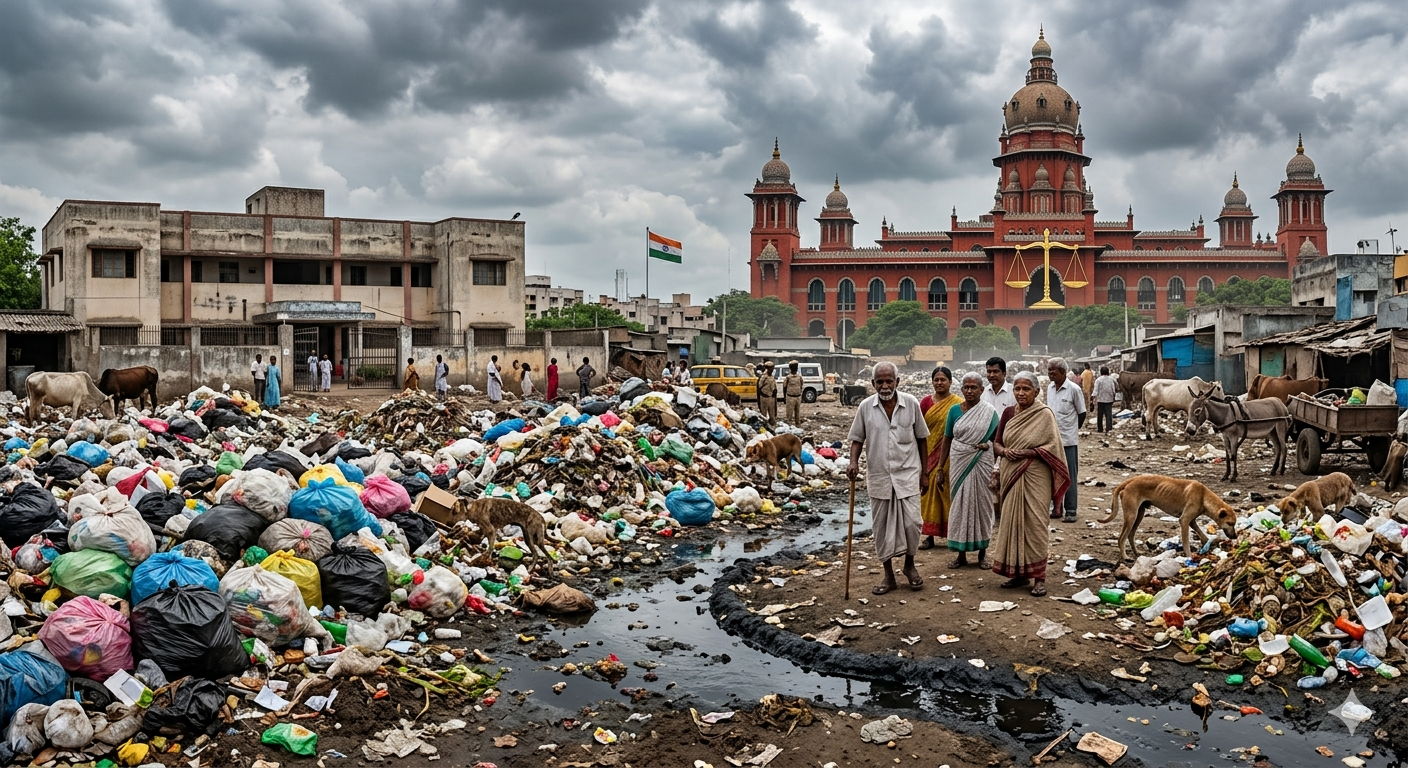இந்த மனு நீதிபதிகள் சதீஷ்குமார் மற்றும் ஜோதிராமன் ஆகியோர் அடங்கிய அமர்வு முன் இன்று (மார்ச் 25, 2026) விசாரணைக்கு வந்தது. “முதியோர் இல்லம் மற்றும் பள்ளிகள் உள்ள ஒரு மக்கள் நெருக்கமான பகுதியில் குப்பைக் கிடங்கு அமைக்க எப்படி அனுமதி வழங்கப்பட்டது?” என நீதிபதிகள் கேள்வி எழுப்பினர்.