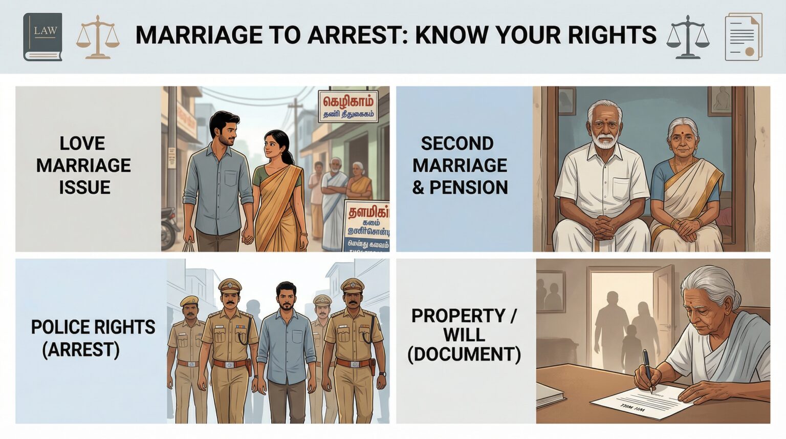 தனிநபர் உரிமைகள், குடும்ப ஓய்வூதியம் மற்றும் காவல் துறை நடைமுறைகள் குறித்த உங்கள் சந்தேகங்களுக்கான சட்ட ரீதியான விளக்கங்கள் இங்கே காணலாம்: