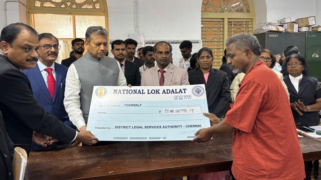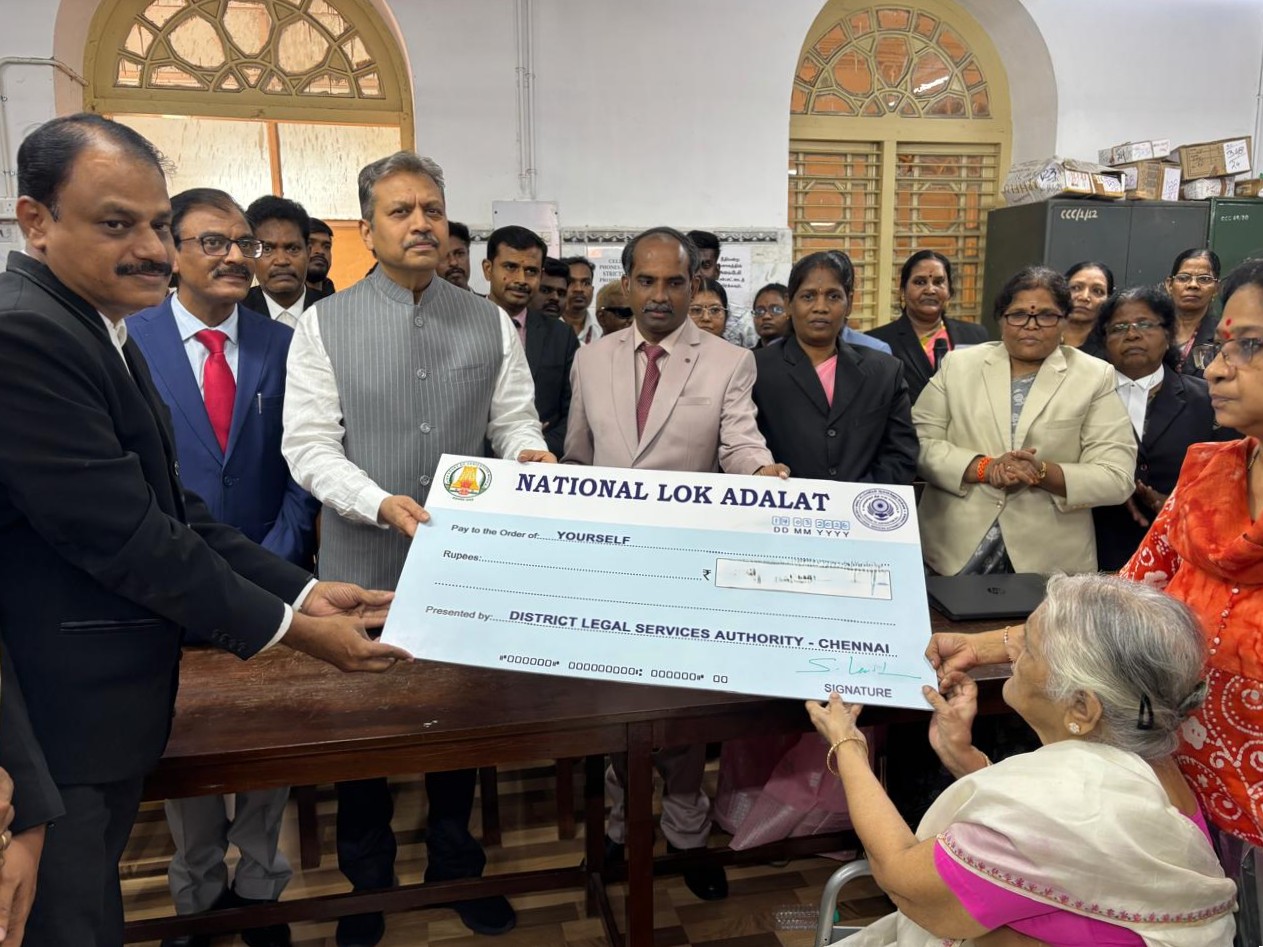 சென்னை நகர உரிமையியல் நீதிமன்றத்தில் நடைபெற்ற லோக் அதாலத்தில் ரூ. 7 கோடி அளவிற்கான இழப்பீட்டுத் தொகையையும், சமரசத் தீர்ப்பு நகல்களையும், காசோலைகளையும் சமரசம் செய்யப்பட்ட வழக்குகளைச் சேர்ந்த சில வழக்காடிகளிடம், சென்னை உயர் நீதிமன்ற நீதிபதியும், தமிழ்நாடு மாநில சட்டப் பணிகள் ஆணைக்குழுவின் உறுப்பினருமான நீதிபதி ஏ.டி. ஜெகதீஷ் சந்திரா வழங்கினார்.