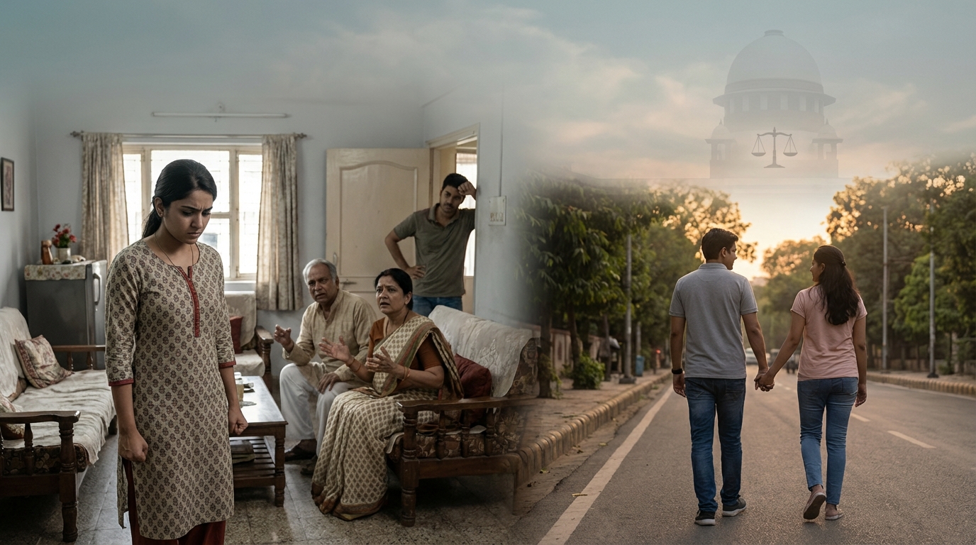உத்தரப் பிரதேசத்தின் ஷாஜஹான்பூர் மாவட்டத்தைச் சேர்ந்த அனாமிகா (18) மற்றும் நெத்ரபால் ஆகியோர் தாக்கல் செய்த மனுவில் நெத்ரபால் ஏற்கனவே திருமணமானவர் என்பதால், அவர் அனாமிகாவை ஆசை வார்த்தை கூறி கடத்திச் சென்றதாகப் பெண்ணின் குடும்பத்தினர் பாரதிய நியாய சன்ஹிதா (BNS) பிரிவு 87-ன் கீழ் வழக்குப் பதிவு செய்தனர். தங்களுக்குப் பெண்ணின் குடும்பத்தினரால் உயிருக்கு ஆபத்து இருப்பதாகக் கூறி, தங்களுக்குப் பாதுகாப்பு வழங்கக் கோரி இருவரும் நீதிமன்றத்தை நாடினர்.