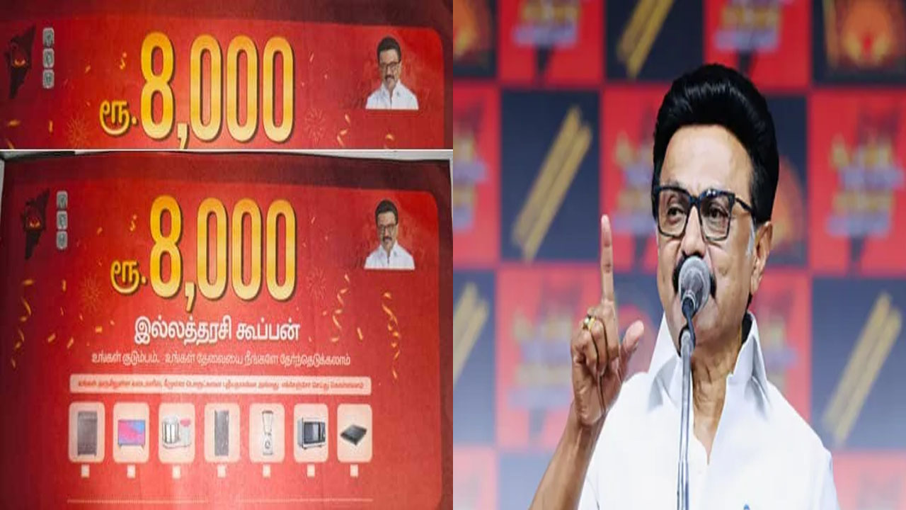 தமிழகத்தின் பல்வேறு பகுதிகளில், குறிப்பாக கிராமப்புறங்களில், திமுகவினர் சில காகிதக் கூப்பன்களை வழங்கி வருவதாக எதிர்க்கட்சிகள் குற்றம் சாட்டின. தேர்தலில் வெற்றி பெற்ற பிறகு இந்த கூப்பனைக் காட்டினால் ₹8000 ரொக்கப்பணம் வழங்கப்படும் என்று கூறி வாக்காளர்களிடம் ஓட்டுச் சேகரிப்பதாகப் புகார்கள் எழுந்தன. இந்தக் கூப்பன்களில் தேர்தல் ஆணையத்தின் ‘சான்றிதழ்’ பெற்றது போன்ற வாசகங்கள் இடம் பெற்றிருந்ததால், இது அதிகாரப்பூர்வமானதோ என மக்கள் குழப்பமடைந்தனர்.