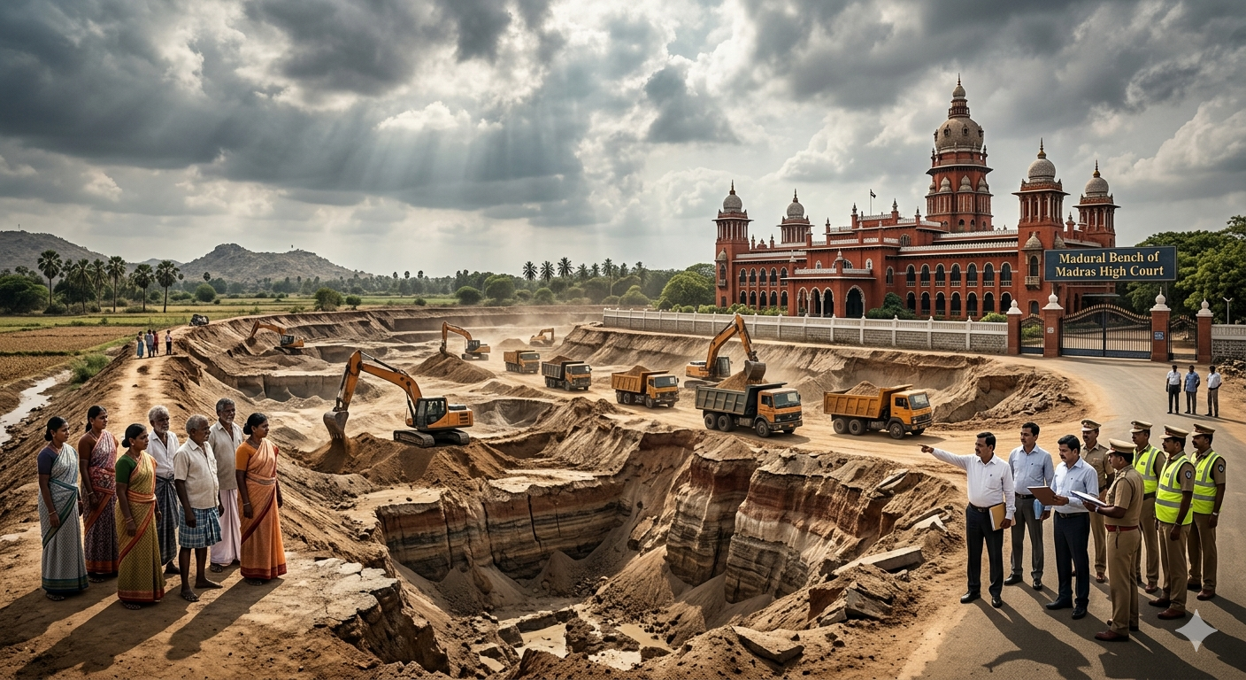 மதுரையைச் சேர்ந்த உதயசிங் என்பவர் தாக்கல் செய்துள்ள பொதுநல மனுவில் திருமங்கலம் – வடுகபட்டி நான்கு வழிச்சாலை பணிக்காக, ALR கட்டுமான நிறுவனத்திற்கு 10,000 கன மீட்டர் மண் அள்ள மதுரை மாவட்ட ஆட்சியர் அனுமதி வழங்கியிருந்தார். ஒரு மீட்டர் ஆழம் வரை மட்டுமே மண் அள்ள வேண்டும் என்பது உட்பட 18 நிபந்தனைகள் விதிக்கப்பட்டன. ஆனால், அந்த நிறுவனம் 4 முதல் 8 மீட்டர் ஆழம் வரை மண் அள்ளிப் பெரும் விதிமீறலில் ஈடுபட்டுள்ளதாக குற்றம் சாட்டியிருந்தார்.